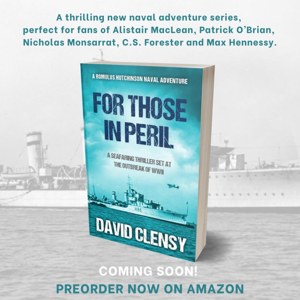 FOR THOSE IN PERIL is the first book in the Romulus Hutchinson Naval Adventure series: action-packed, authentic historical adventures following twin brothers serving with the Royal Navy and the Merchant Navy during the Second World War. It will be available in paperback and Kindle formats from August 1.